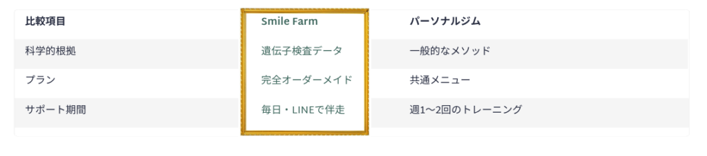 なぜSmile Farmが選ばれるのか? 一般的なジムやエステ、オンラインダイエットとの違いを比較してみましょう。