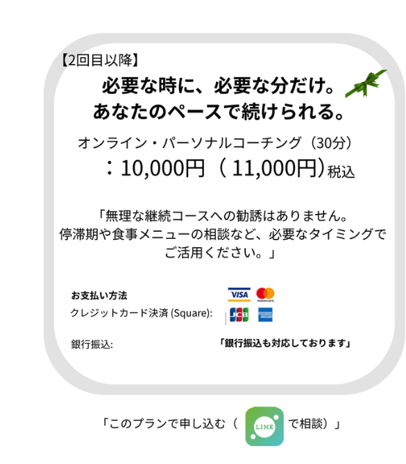 あなたの小さな疑問や不安にも、いつでも丁寧にお答えします。一緒に、あなたらしい健康的な未来を築いていきましょう。